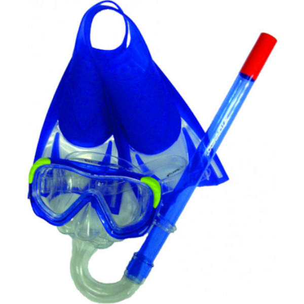 - Kids size set consisting of fins, mask and snorkel.