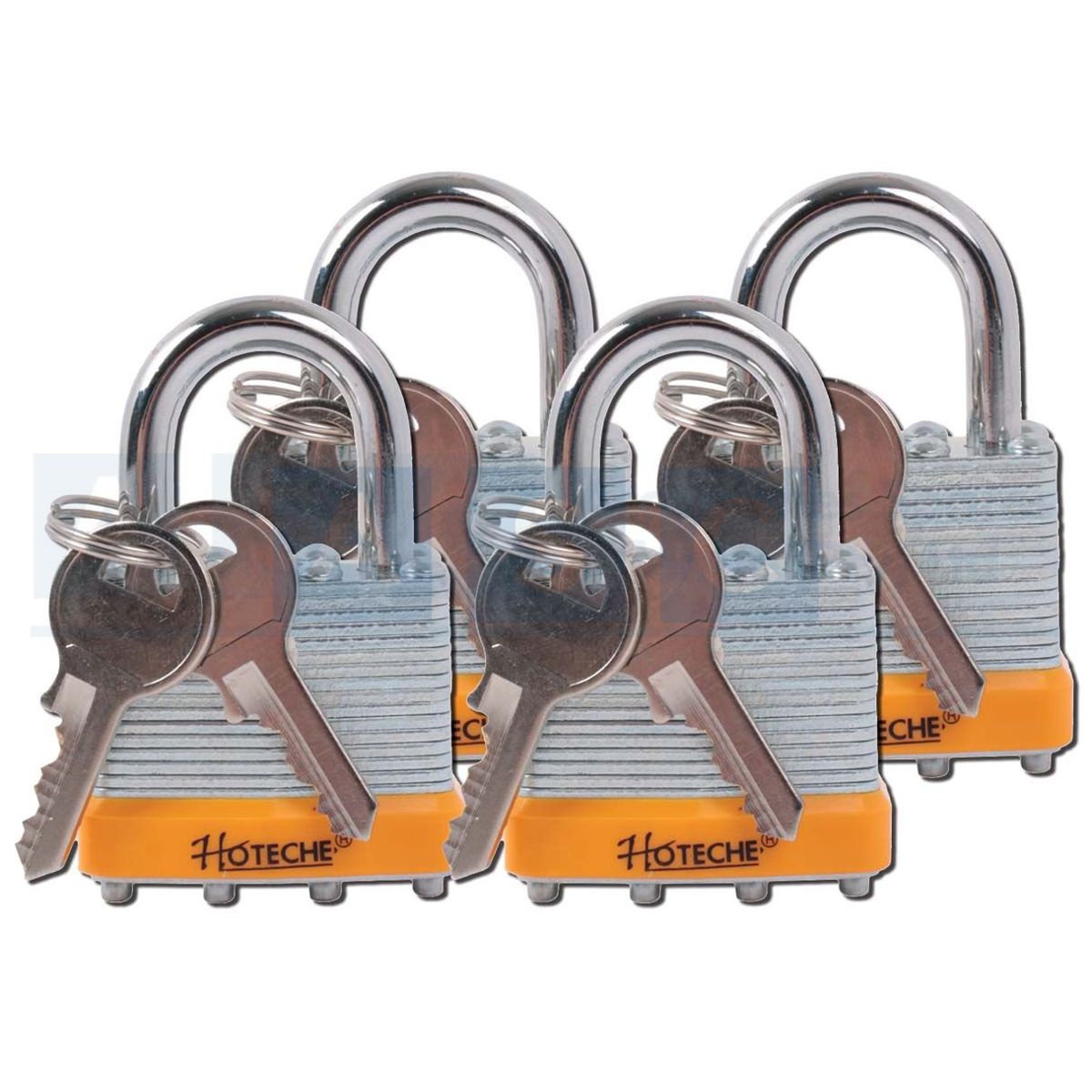 Secure your items with this 4 piece keyed-alike Hoteche Padlock Set.