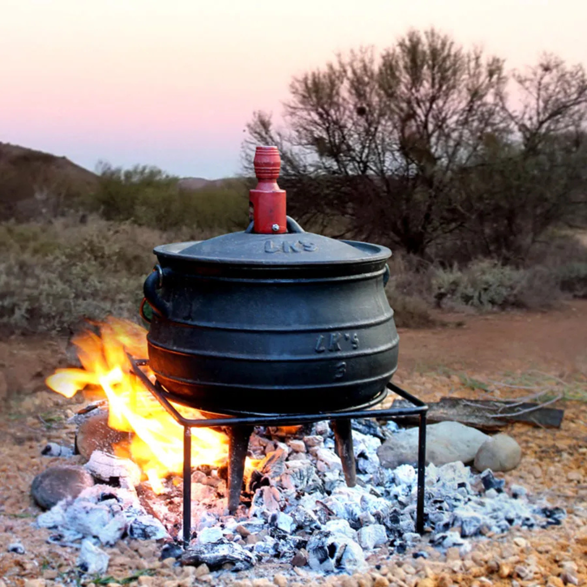 The LK’s Rectangular Multi Stand is a durable steel stand that can be used flat or upright, ideal for camping, braais, or general outdoor use.