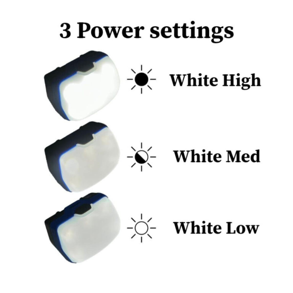 White medium: 75 lumens, runtime up to 10 hours